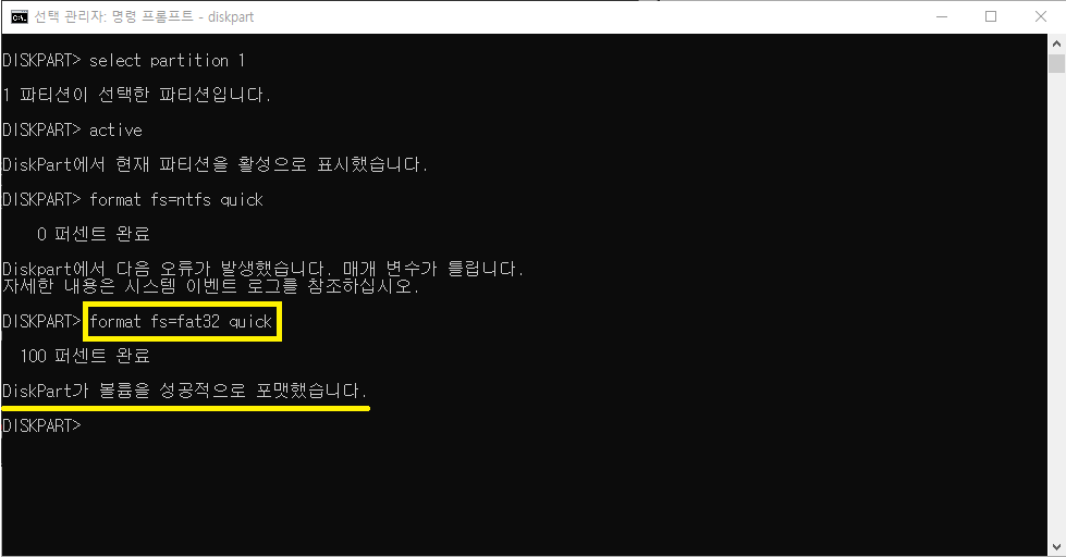Diskpart 매개변수 오류 발생시 USB 포맷방법